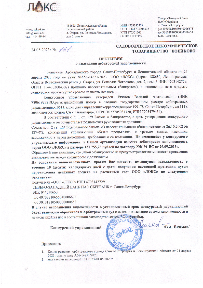 | 10320002780144 | территория СНТ Воейково, земельный участок 519 | Холин Александр Валентинович | 144 |