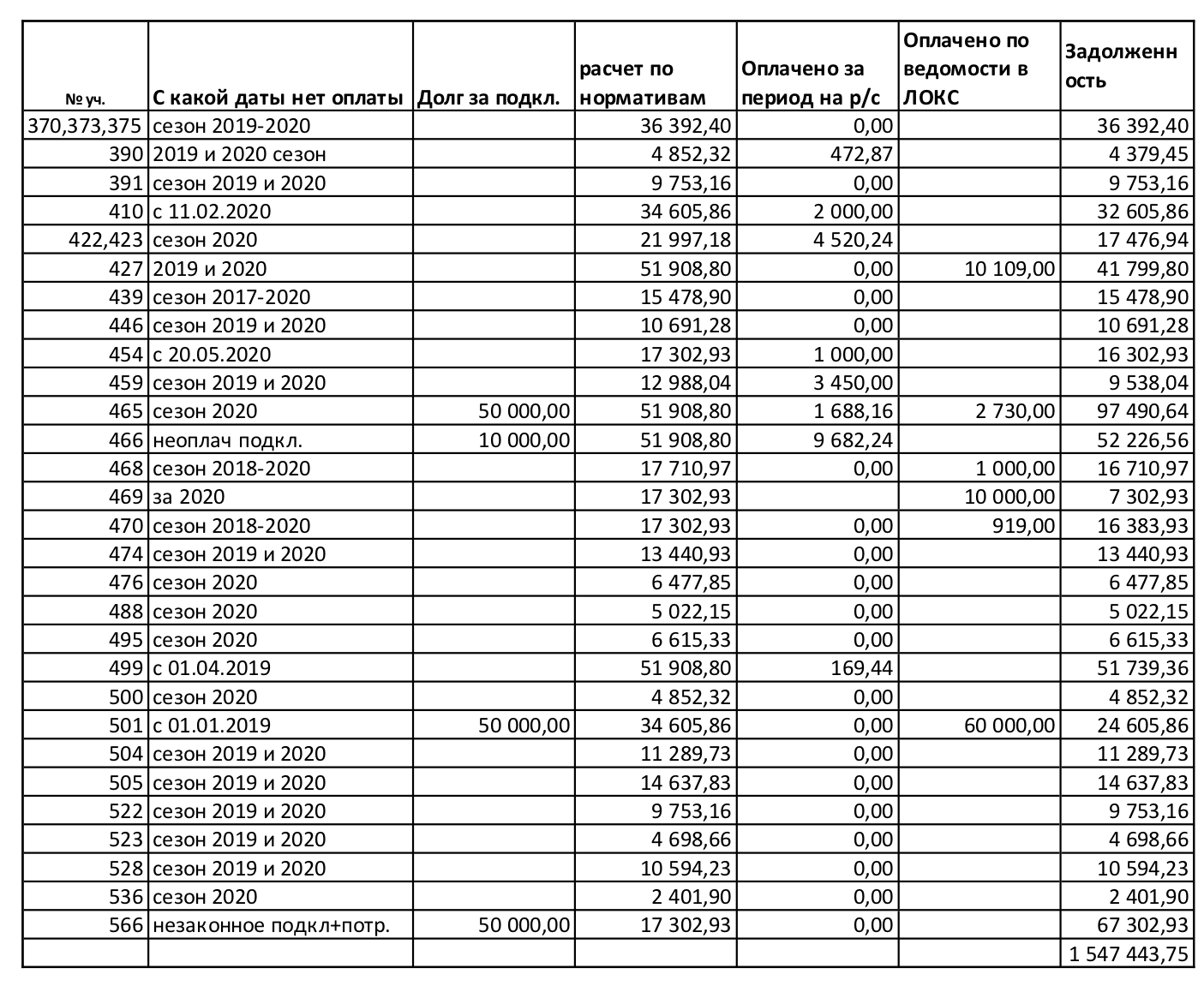 Номера участков водопользователей, информация о которых была передвна в ООО "Водоканал-Ладога". Обратите внимание что л/с для участков 14, 163, 202, 207, 219, 261, 390, 441, 454, 462, 485, 486, 499, 504, 505, 524, 530, 530а открыты в декабре 2022г.