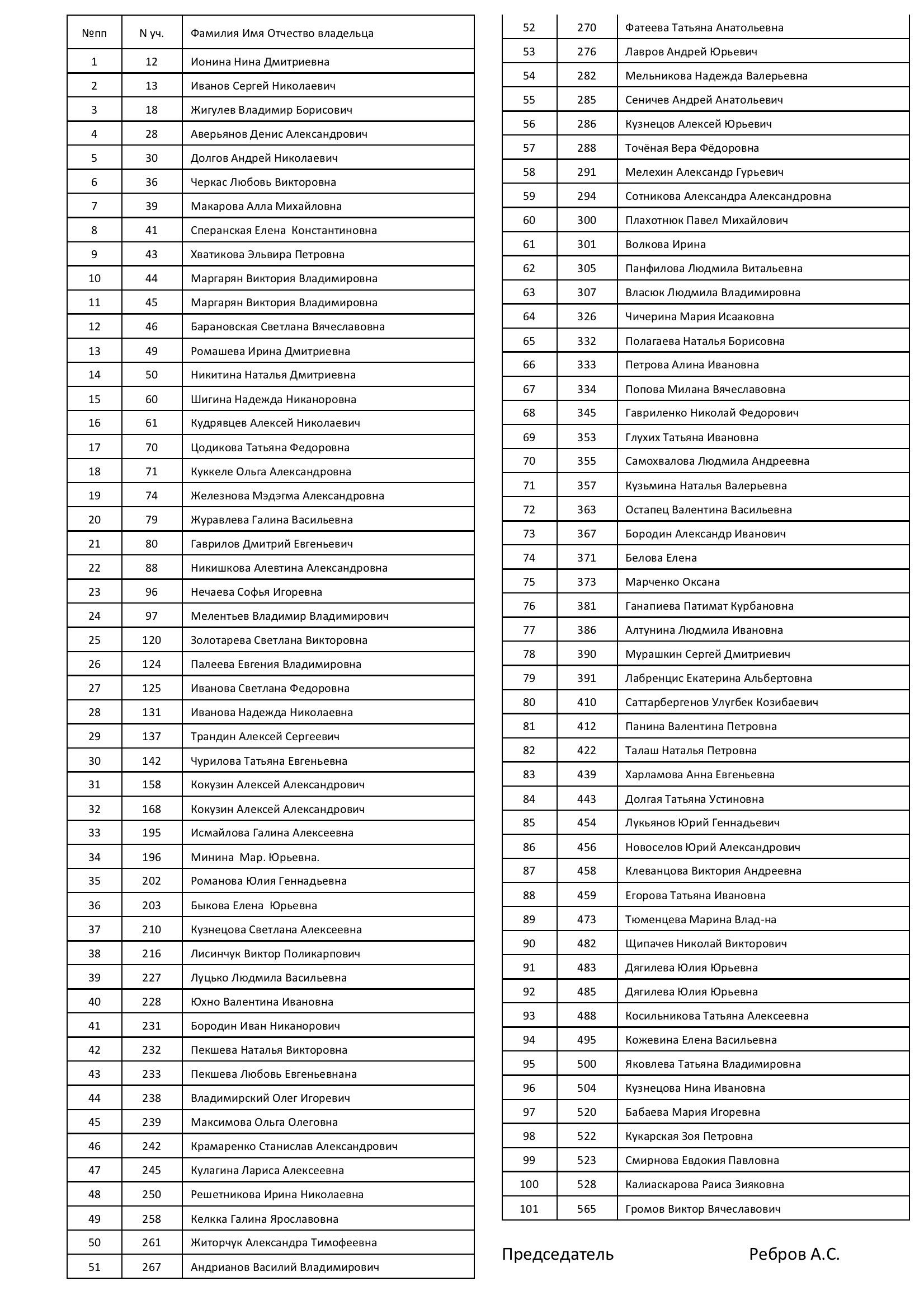 | 1 | АфанасьевЮ.Ф. | 10320007000286 | 286 |