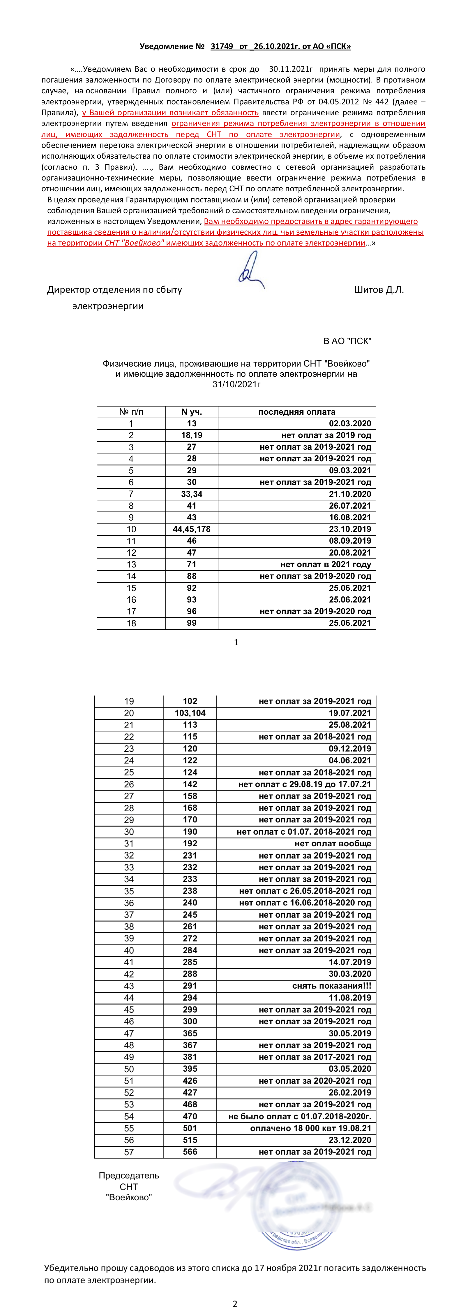 2. Отчет Председателя СНТ "Воейково". ( скачать отчет)